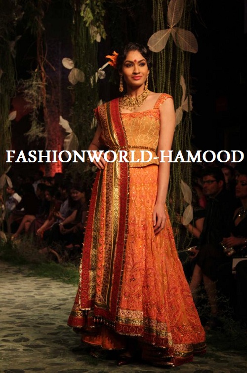 Tarun Tahiliani, The Czar of Couture, dazzled the audience on the opening day of the Aamby Valley India Bridal Fashion Week 2012 The show opened with bare foot models in a glittering vision of tulle and silk for the most stunning lehengas and paneled long cholis. Scooped necks were sensuous while the paisleys and gorgeous embroidery twinkled under the ramp lights.
